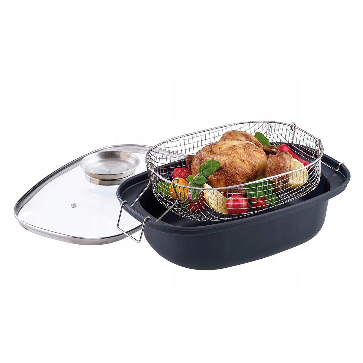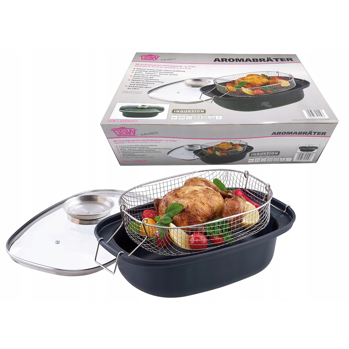 Brytfanna Aroma jest produktem godnym polecenia. Łączy ze sobą solidne wykonanie wraz z innowacyjnym rozwiązaniem w postaci nierdzewnego głębokiego koszyczka, dzięki któremu można smażyć potrawy w głębokim oleju (frytować) lub dusić.