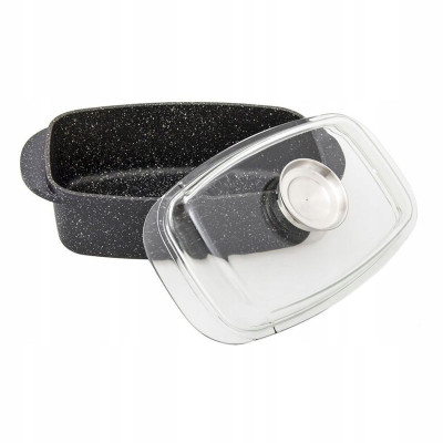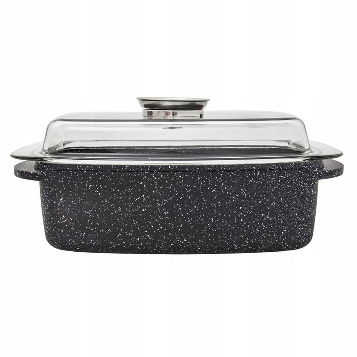Element 1: brytfanna z silikonowymi nakładkami na uchwytach, - wymiary: 42 x 26 x 10, - wymiary wewnętrzne: 34,5 x 24,5 x 9,5 cm, - średnica pola grzewczego: 18 cm, - pojemność całkowita: 6,8 l