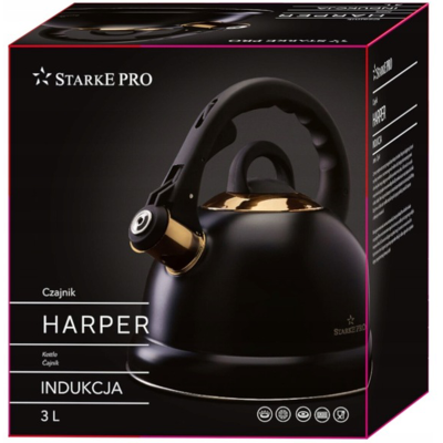 Elegancki i funkcjonalny czajnik z najnowszej linii wzorniczej wykonany z materiałów najwyższej jakości. Zrobiony ze stali nierdzewnej z wbudowanym na stałe gwizdkiem. Posiada funkcjonalny i nienagrzewający się bakelitowy uchwyt z powłoką silikonową "soft-touch", który stabilnie będzie się trzymać w dłoni.