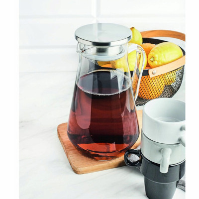 Dzbanek do herbaty Bianco 2 l wykonano ze szkła borokrzemowego. Wykorzystasz go do zimnych i gorących napojów. Co więcej, zdobędziesz możliwość zalewania herbaty bezpośrednio wrzątkiem. Jest to możliwe dzięki temu, że użyte szkło borosilikonowe ma wysoki współczynnik odporności na szok termiczny. Jest też dobrze chronione przed matowieniem i trudno je zarysować. Sprawia to, że bezpiecznie przygotujesz w nim herbatę. Zyskasz też komfort i precyzję serwowania oraz nalewania napojów. Dzbanek Bianca ma dużą, ergonomiczną rączkę i praktyczną wylewkę. Tym sposobem uzupełnisz domową zastawę do kawy i ciasta o stylowy dzbanek szklany. Jego zamknięcie jest stalowe i zaprojektowane, by zatrzymać wszystkie dodatki do napojów w trakcie nalewania ich do szklanek. Produktu możesz używać w temperaturze do 120 st. C. Sam szklany dzbanek możesz myć w zmywarce.