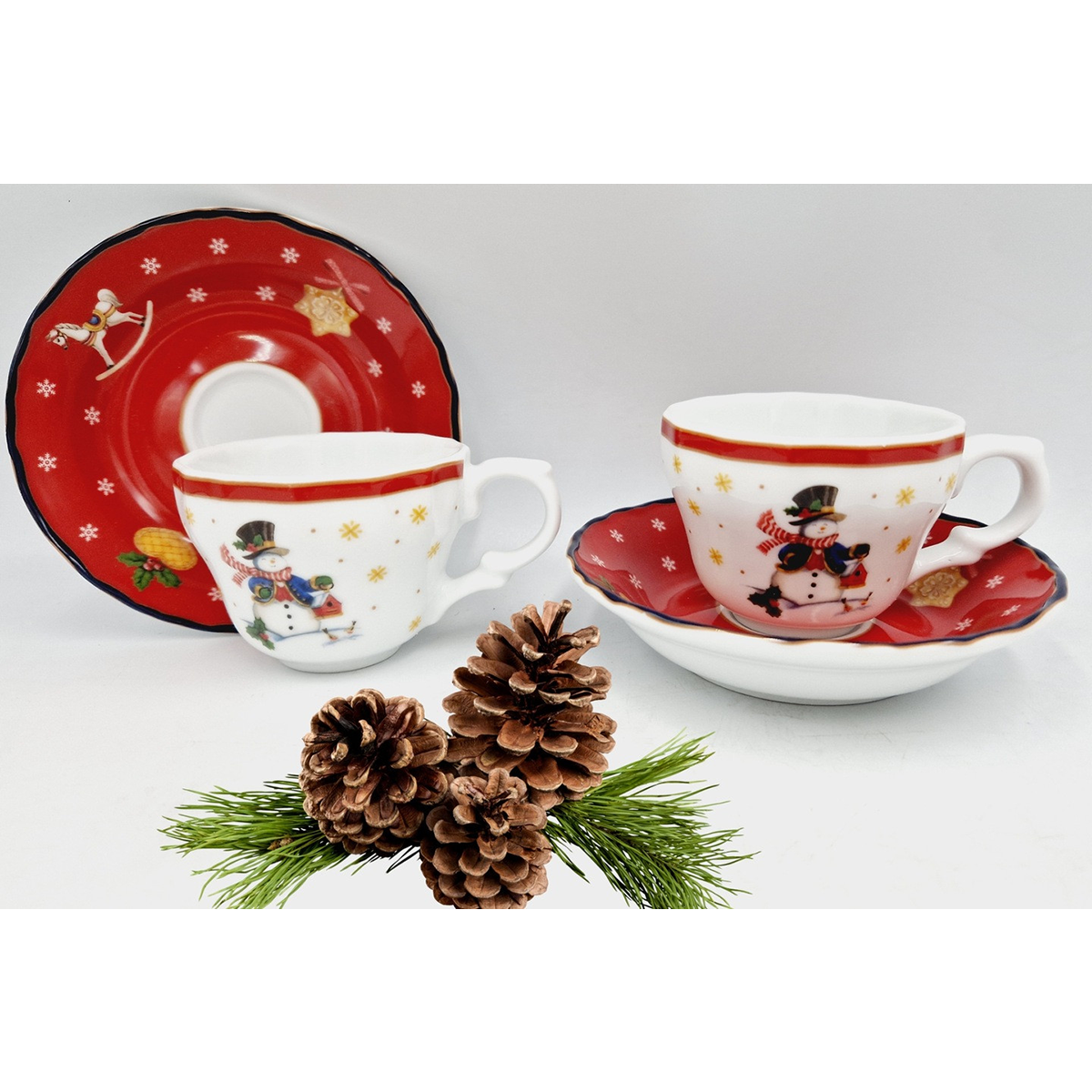 ZESTAW DWÓCH FILIŻANEK ZE SPODKIEM BAŁWANEK ESPRESSO 90ML RED BOŻE NARODZENIE