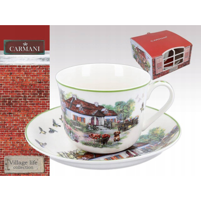 Porcelanowa filiżanka o pojemności 400 ml ze spodkiem wykonane z połyskującej, bardzo dobrej jakości porcelany, całość pakowana jest w przedstawione na zdjęciu upominkowe, opakowanie o motywie identycznym z motywem filiżanki. Zdobione różnymi motywami nawiązującymi do polskiej wsi. Bogade wzory z bardzo żywymi kolorami z pewnością spodobają się każdemu.