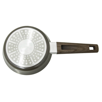 Dno patelni jest chronione granitową powłoką ogniotrwałą. Patelnia jest dostarczana w siwym kolorze ze wzorem granitowym.