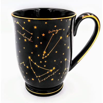 Kubek wykonany z wysokiej jakości porcelany słynnego Polskiego producenta porcelany Bogucice ,kubek z uchem (350 ml) na porcję kawy lub herbaty. Dekoracja w postaci znaków zodiaku ,nadaje mu delikatnego blasku.