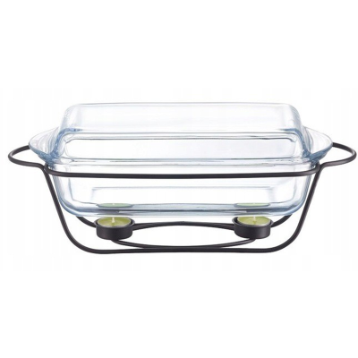Naczynie okrągłe umożliwia zarówno przygotowanie pysznego dania, jak i długotrwałe podtrzymywanie temperatury serwowanego posiłku. Wykonane jest z najwyższej jakości szkła, które dodatkowo charakteryzuje się eleganckim, ponadczasowym wyglądem i prostym designem. Produkt świetnie sprawdza się podczas kolacji świątecznej czy też innych przyjęć okolicznościowych. Naczynia (bez stelaża) można używać w temperaturach od -40°C do +300°C, dlatego idealnie sprawdzą się do przechowywania dań w lodówce oraz do używania w piekarniku. Dodatkowo, naczynie (bez stelaża) jest przystosowane do mycia w zmywarce. Naczynie z bardzo stylowym czarnym stelażem wpisuje się idealnie w najnowsze trendy wnętrzarskie.