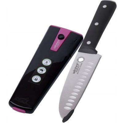 Nóż uniwersalny Wiltshire Stay Sharp wykonany z wysokiej jakości stali nierdzewnej i tworzywa sztucznego. W zestawie znajduje się pokrowiec, który jest jednocześnie ostrzałką, za każdym razem kiedy chcemy użyć noża i wysuwamy go z pokrowca, ostrze jest automatycznie przygotowywane do pracy.