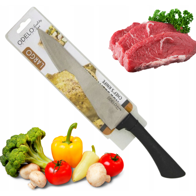 Nóż kuchenny wykonany ze stali nierdzewnej, który zapewnia czyste i piękne wnętrze. Powierzchnia łatwa w utrzymaniu, odporna na korozję i czyszczenie. Na przykład możesz kroić mięso lub warzywa itp. Łatwo go umyć w zmywarce.