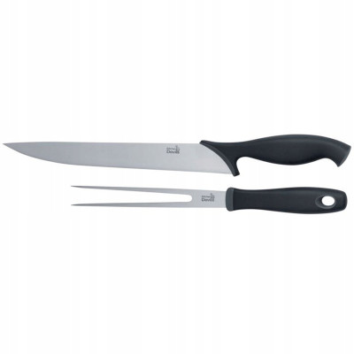 Zestaw nóż i widelec do mięsa z to niezastąpiony duet podczas pieczenia mięsa w piekarniku lub jego opiekania na grillu. Widelec do mięsa, umożliwi jego stabilność podczas krojenia, a także pozwoli zmieniać ułożenie mięsa podczas jego obróbki cieplnej. Nóż natomiast będzie niezbędny do porcjowania zarówno upieczonego jak i surowego mięsa.