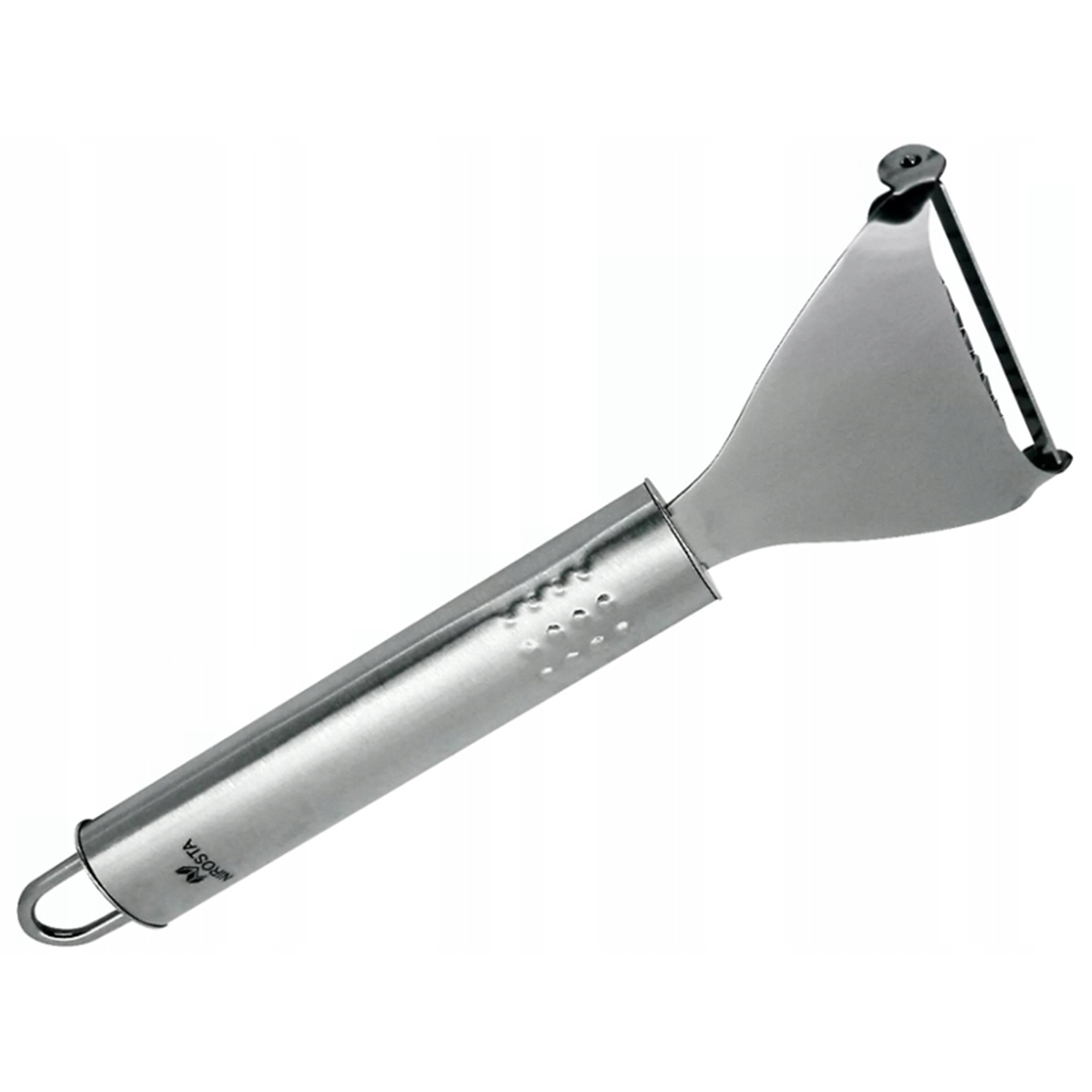 Obieraczka do jarzyn niemieckiej firmy Fackelmann może stać się bardzo poręcznym narzędziem w Państwa kuchni – została ona bowiem wykonana w pełni z najwyższej jakości stali nierdzewnej. Dzięki niej nie tylko szybko i sprawnie można obierać warzywa, ale również np. oczyścić rybę z łuski.
