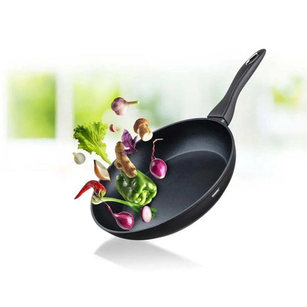 Patelnia Smart Life z powłoką o strukturze plastra miodu zapewnia wyjątkową chrupkość potraw przy minimalnej ilości tłuszczu. Wykonana z tłoczonego aluminium, nadaje się do wszystkich typów kuchenek, w tym indukcyjnych, i jest łatwa w czyszczeniu.