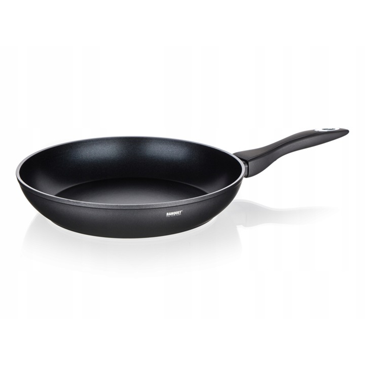 Kuta aluminiowa patelnia 24 x 4,8 cm MATOWA CIEMNA SZARY wykonana jest ze stopu aluminium poprzez odkucie w formie, gr. materiał 3 mm. Posiada wewnętrzną, nieprzywierającą, 2-warstwową powierzchnię odporną na zarysowania, zewnętrzną powłokę odporną na ciepło, miękki w dotyku uchwyt i indukcyjne dno. Patelni można używać do wszystkich rodzajów potraw, od minut po zwykłe gotowanie. Patelnia jest doskonała dzięki dobrej przewodności cieplnej równomiernie rozprowadza ciepło podczas gotowania.