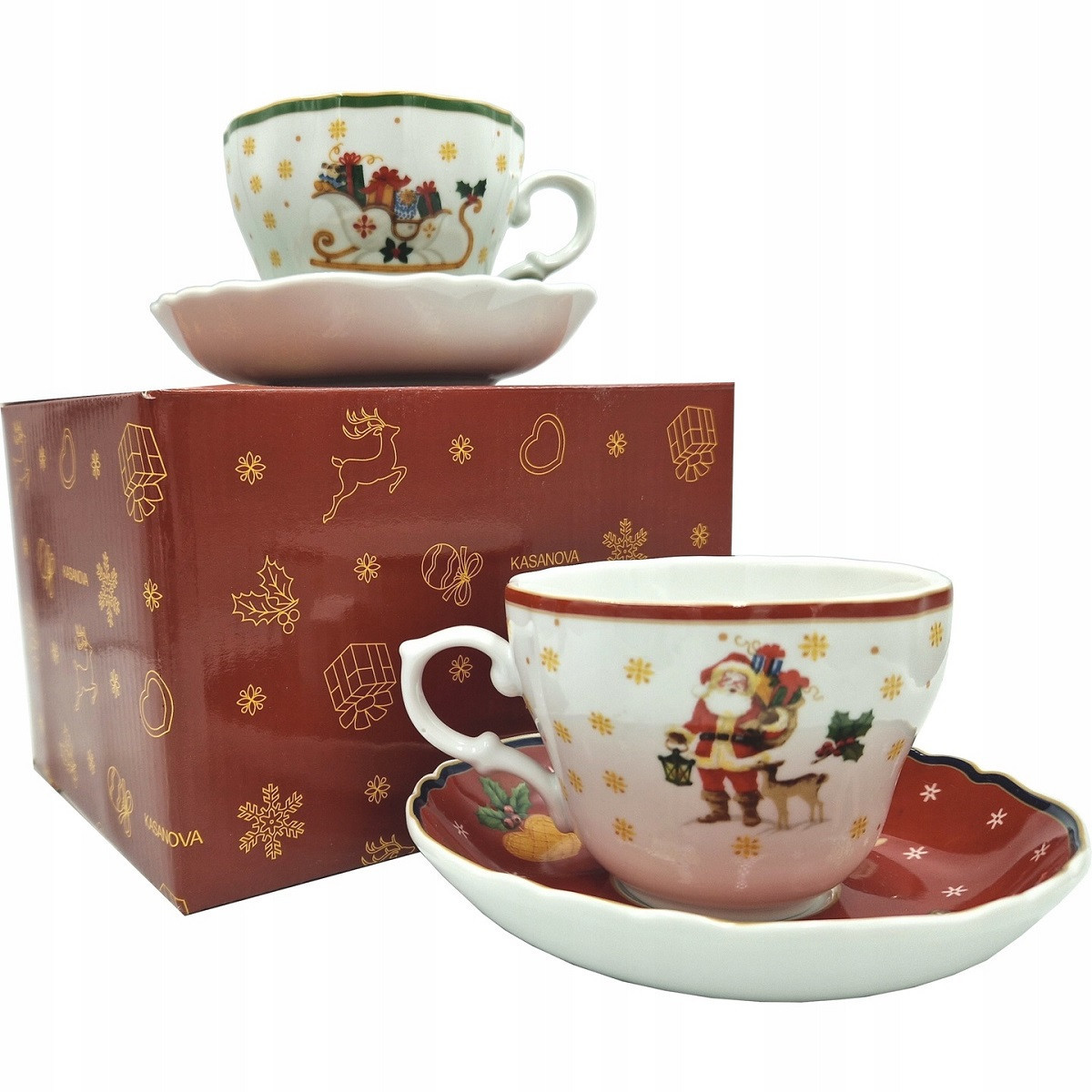 Zestaw 2 filiżanek ze spodkiem 250 ml Red/Green Boże Narodzenie
