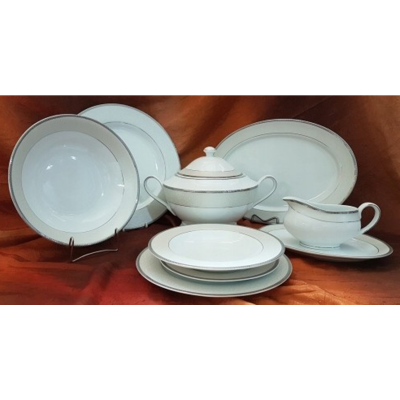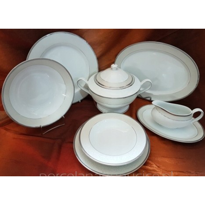 Serwis obiadowy o klasycznym wyglądzie i charakterystycznej platynie idealnie wkomponuje się zarówno w styl nowoczesnego, jak i klasycznego domu. Zastosowane materiały sprawią, że serwis na długo zagości w Państwa domowym zaciszu.
