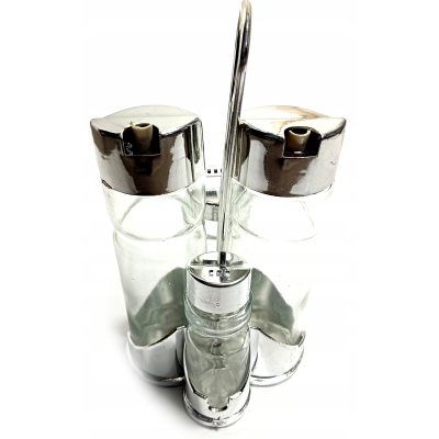 Ulepszona wersja klasycznego zestawu pojemników na podstawowe przyprawy kuchni domowej i restauracyjnej. Elementy szklane przyprawnika można myć w zmywarkach. Zastosowanie domowe i gastronomiczne.