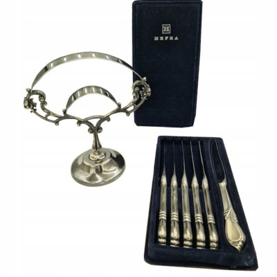 POSREBRZANE WIDELCE DO OWOCÓW+PODSTAWKA HEFRA OXYDA
