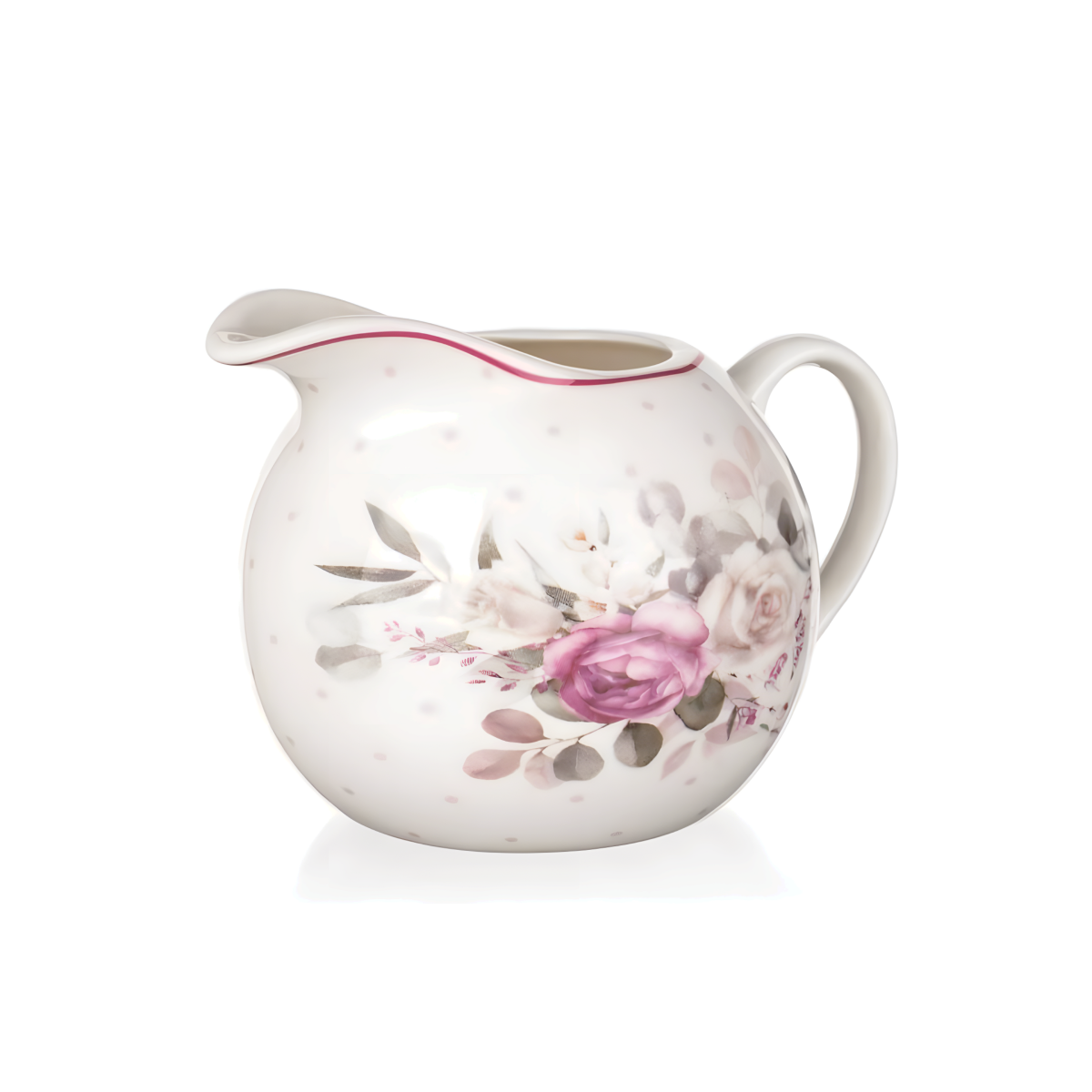 Mlecznik porcelanowy BANQUET ROSE 250 ml z kwiatowym wzorem – elegancki dodatek do serwowania kawy i herbaty, odpowiedni do mikrofalówki i zmywarki.