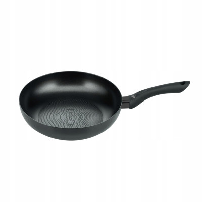 Patelnia posiada bardzo wygodną i ergonomiczną dobrze leżącą w ręce rączkę dając tym samym pewność oraz precyzję chwytu.