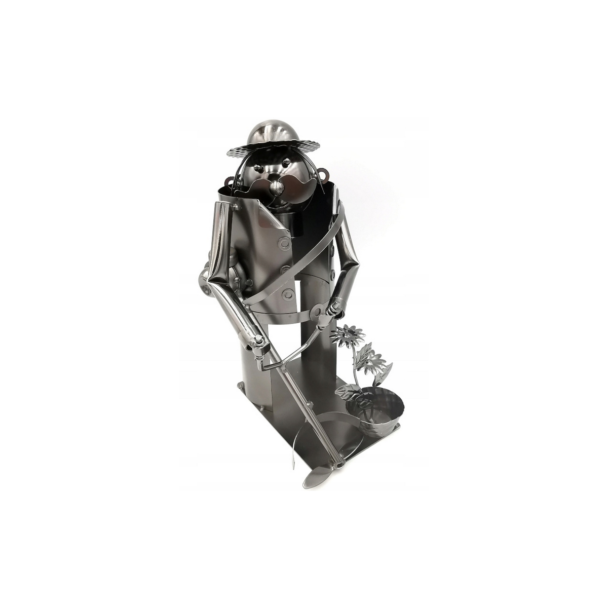 Metalowy stojak na wino „OGRODNIK” to ręcznie wykonany prezent dla miłośnika ogrodu, pasujący do butelek 0.75L o średnicy do 7,7 cm. Idealny jako dekoracja i upominek na rocznicę, urodziny, święta – trwały, estetyczny i pełen symboliki.