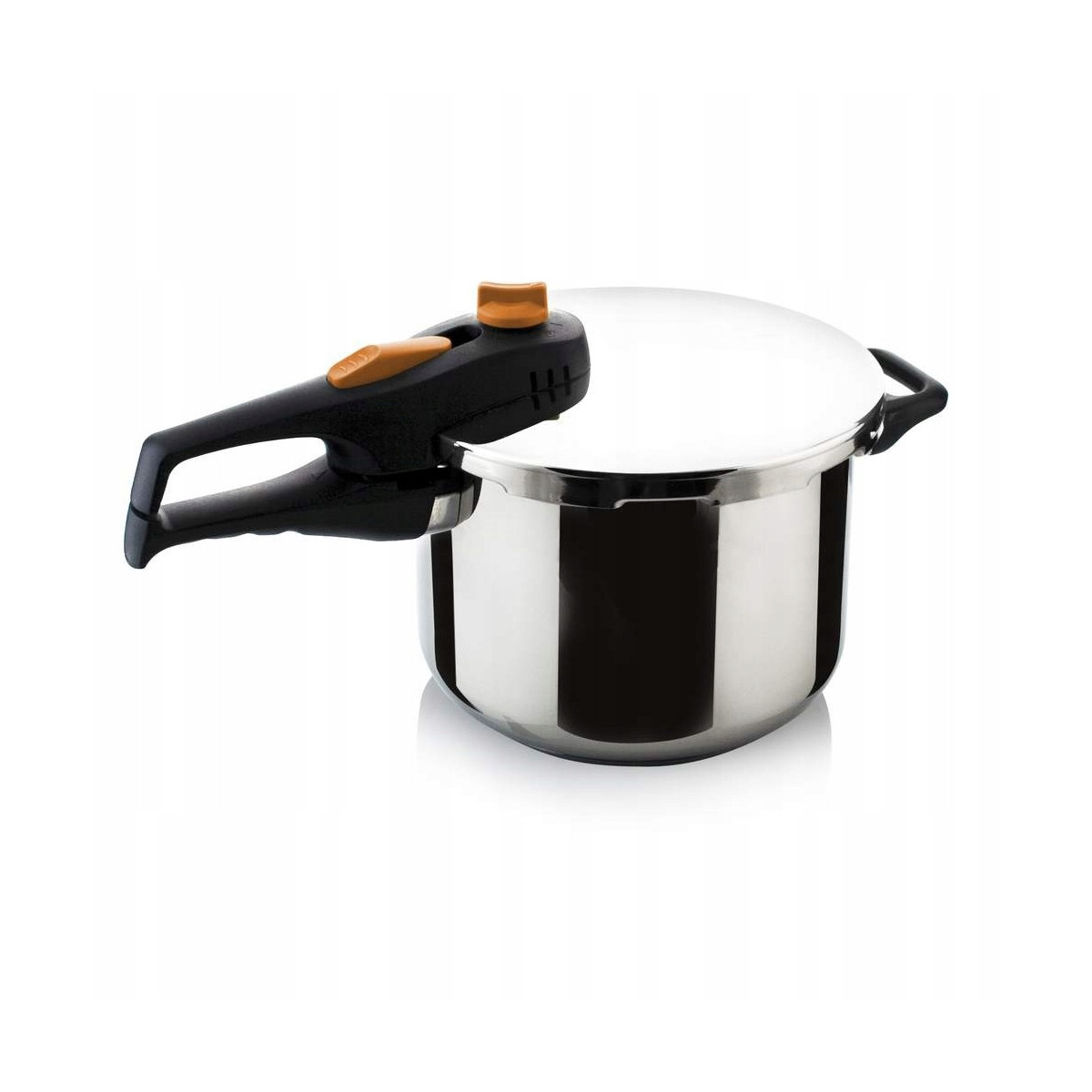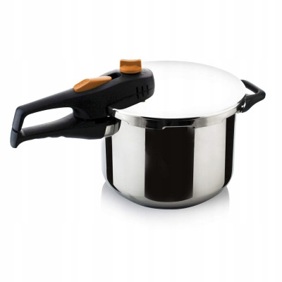 Solidny i funkcjonalny szybkowar o pojemności 6 litrów, wykonany z wysokiej jakości stali nierdzewnej 18/8. Wyposażony w nowoczesne zamknięcie bagnetowe oraz pomarańczowe pokrętło, które umożliwia regulację natężenia ciśnienia roboczego (0,6 lub 0,9 bara).