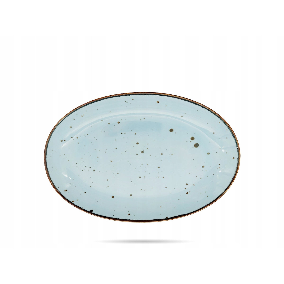 Klasyczny, owalny półmisek o długości 31 cm i szerokości 20,5 cm z serii Cottage Sky polskiej firmy Porcelana Bogucice. Seria Cottage w kolorze Sky to linia jasnej, błękitnej porcelany z nieregularnymi, ciemnymi i nakrapianymi wzorami. Takie wzornictwo dodaje charakteru i niepowtarzalnego wyglądu. Jakość porcelany pozwala na bezpieczne mycie jej w zmywarkach, a także na stosowanie jej w kuchenkach mikrofalowych.