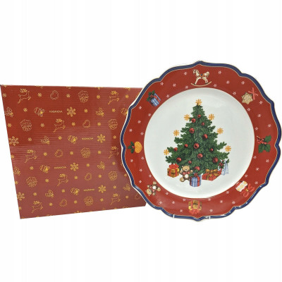 PÓŁMISEK OKRĄGŁY DO CIASTA 32,5CM CHOINKA ŚWIĘTA RED BOŻE NARODZENIE DUŻY
