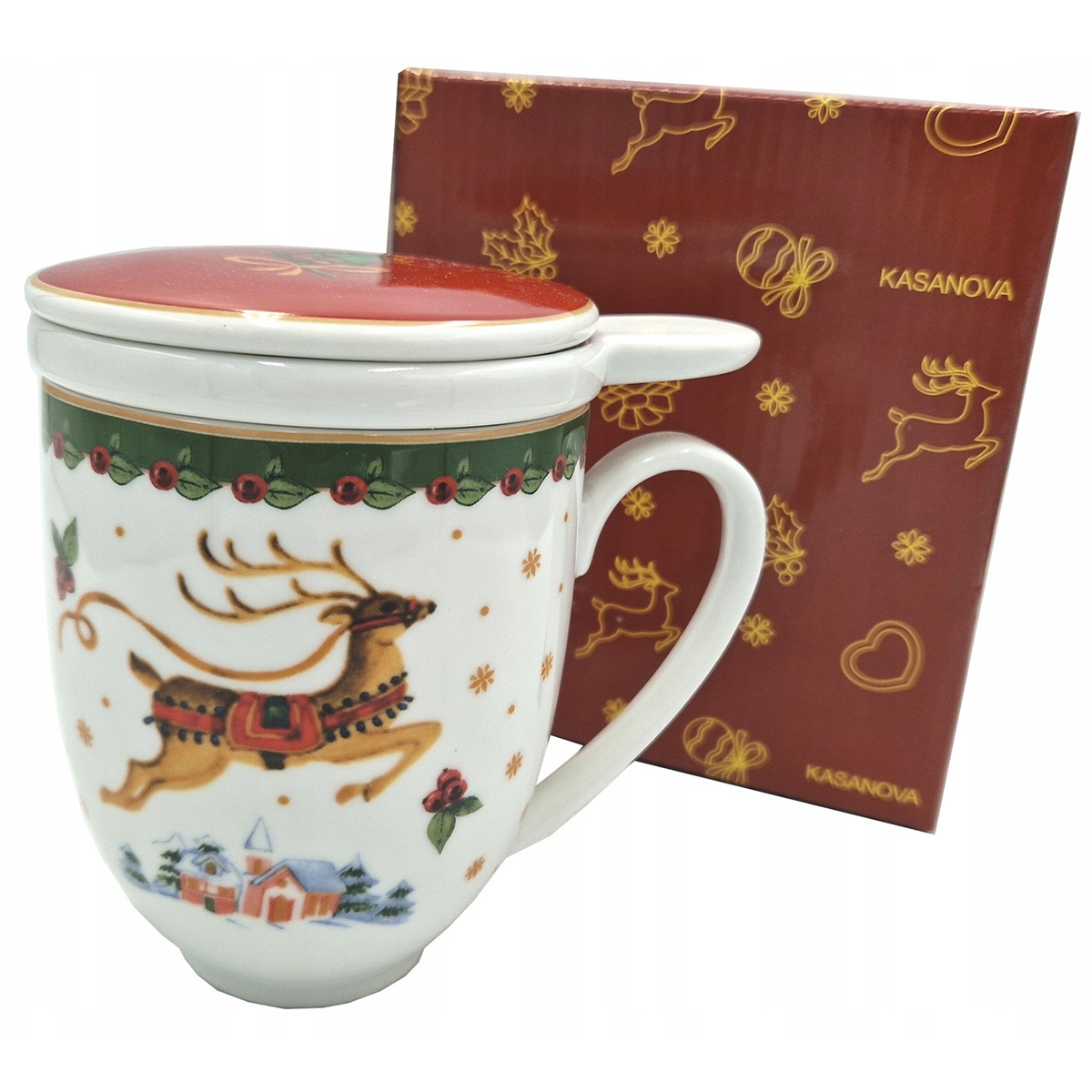 KUBEK Z ZAPARZACZEM 350ML RENIFER ŚWIĘTA RED BOŻE NARODZENIE